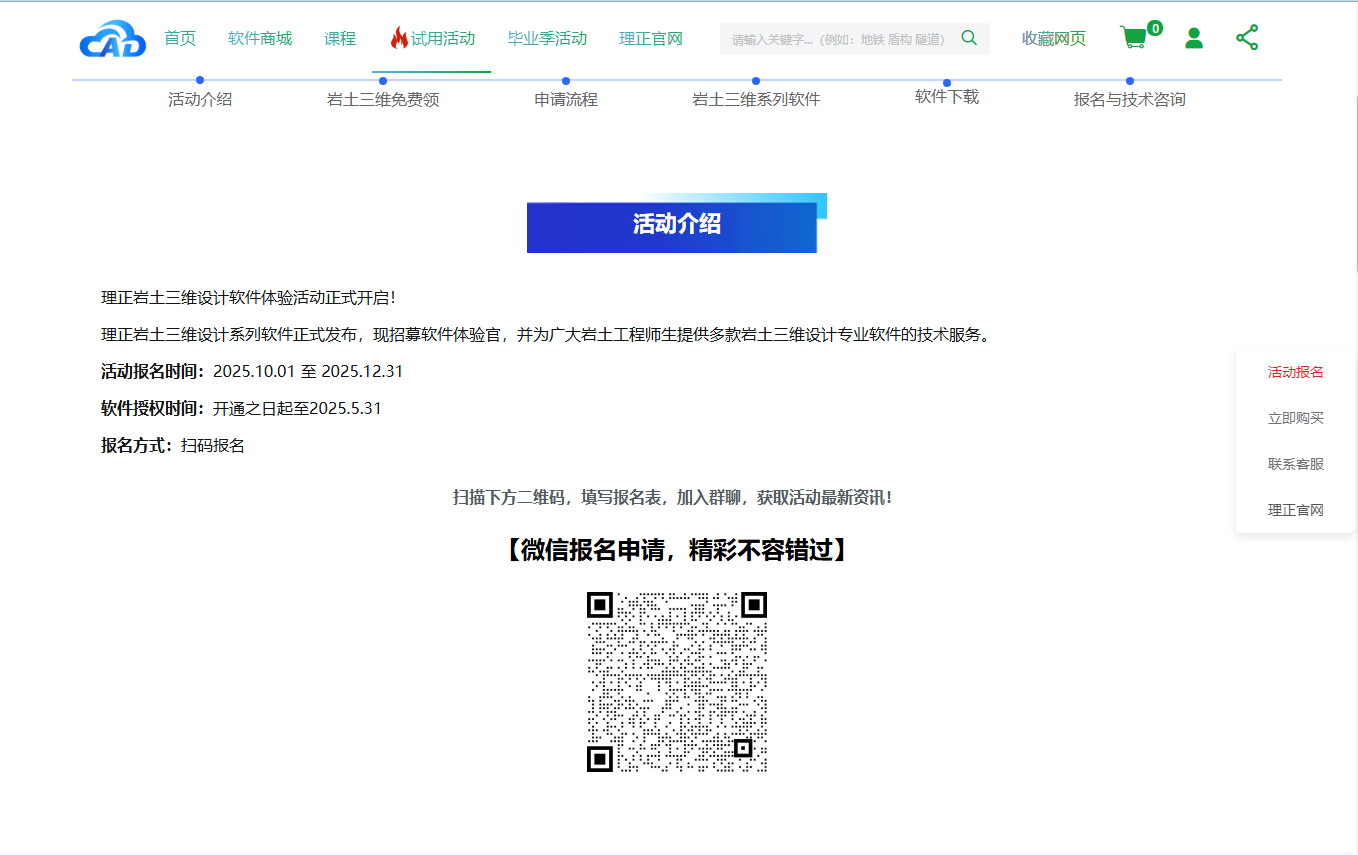 下载申请表岩土工程师报名申请后,转发活动,免费获得理正岩土三维系列软件授权(免费授权期限自开通授权之日起共计3个月有效期)。